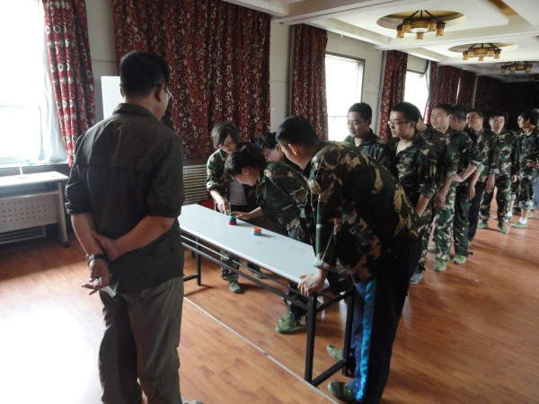 其中令人感觸最深的項目是畢業墻,又稱逃生墻,源于二戰時期水手合力爬上四米多高的甲板逃生的真實經歷。一塊4.2米高的高墻,光滑、沒有任何工具,要求所有的隊員都翻越過去才算勝利。這是最后一個項目,它把團隊精神發揮到淋漓盡致。大家采用“疊人墻”的方法,讓身強力壯的隊友作為底座,先由身手靈活的隊友踩在他們的肩膀,大家奮力將他們先托上高墻,然后他們在上面接應,其他隊友踩著底座隊友的肩膀,一個一個成功地翻越了高墻。整個過程歷時不過10分鐘,翻越高墻后,所有隊員都為自己和團隊的精彩表現鼓掌、歡呼。那一刻的場面激動人心。