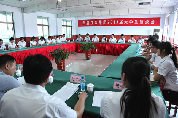 會上,首先由華盛江泉集團人力資源部主任李新勝對大學生的主要工作情況進行了簡要介紹。隨后參會大學生圍繞自身成長經歷,結合當前基層工作情況展開熱烈討論,積極建言獻策,分別從大學生檔案的管理、企業文化等方面進行了交流探討,并提出了發展建議。各位領導針對員工在工作中的疑問和建議逐一進行了解答。座談氣氛熱情洋溢、和諧融洽,充分展現了公司高層領導傾聽基層心聲、注重人文關懷的管理理念和員工求真務實、敬業愛崗的精神風貌。